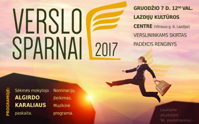 Kviečiame 2017 m. gruodžio 7 d. 12.00 val. atvykti į renginį „Verslo sparnai 2017“, kuris vyks Lazdijų kultūros centre (Vilniaus g. 6, Lazdijai).